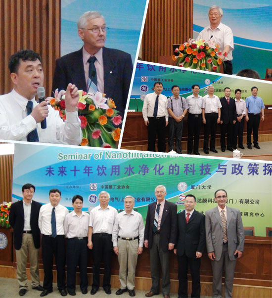 早在1999年時(shí)任福建省省長(zhǎng)的習(xí)近平來(lái)廈門(mén)大學(xué)調(diào)研時(shí)就指出:“膜技術(shù)是世界公認(rèn)的21世紀(jì)綠色、節(jié)能的高科技產(chǎn)業(yè)技術(shù)”。膜技術(shù)在微濾、超濾、納濾、反滲透等水凈化工藝中正在發(fā)揮越來(lái)越大的作用。本次高端論壇特邀美國(guó)GE公司水與工藝技術(shù)總工程師Peter Eriksson博士、中國(guó)膜工業(yè)協(xié)會(huì)名譽(yù)理事長(zhǎng)、國(guó)家液體分離膜工程技術(shù)中心首席科學(xué)家高從堦院士、新加坡國(guó)立大學(xué)李光耀公共學(xué)院特約研究員、國(guó)家發(fā)改委水政策專家楊尚寶教授、華中科技大學(xué)同濟(jì)醫(yī)學(xué)院公共衛(wèi)生學(xué)院飲用水安全與環(huán)境毒理學(xué)專家吳志剛教授、中國(guó)膜工業(yè)協(xié)會(huì)副理事長(zhǎng)、廈門(mén)大學(xué)水科技與政策中心首席科學(xué)家藍(lán)偉光教授齊聚廈大,共同探討了未來(lái)十年膜技術(shù)在解決飲用水問(wèn)題中的地位和作用;膜技術(shù)在海水淡化、污廢水處理等領(lǐng)域中的應(yīng)用,通過(guò)水的循環(huán)利用解決水資源短缺問(wèn)題;特別是納濾技術(shù)發(fā)展到今天,已能濾除水中的微污染,包括重金屬和有機(jī)化合物,又能保留水中微量的天然礦物質(zhì),是目前解決飲用水問(wèn)題的方案,如果說(shuō)膜技術(shù)是水處理的皇冠技術(shù),那么納濾技術(shù)就是鑲嵌在這頂皇冠上的明珠。